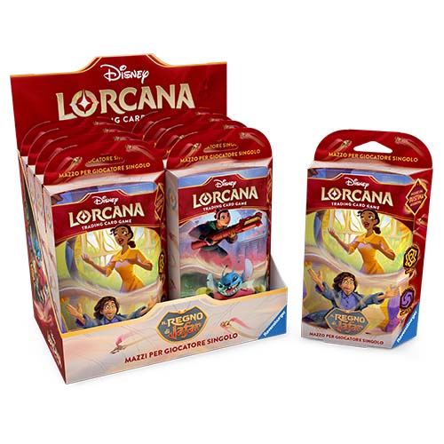 Mazzi Starter: due nuovi mazzi pre-costruiti, uno con Jafar e Iago (Ametista/Acciaio) e l’altro con Belle e la Bestia (Rubino/Zaffiro), ideali per iniziare o aggiornare il proprio mazzo.
