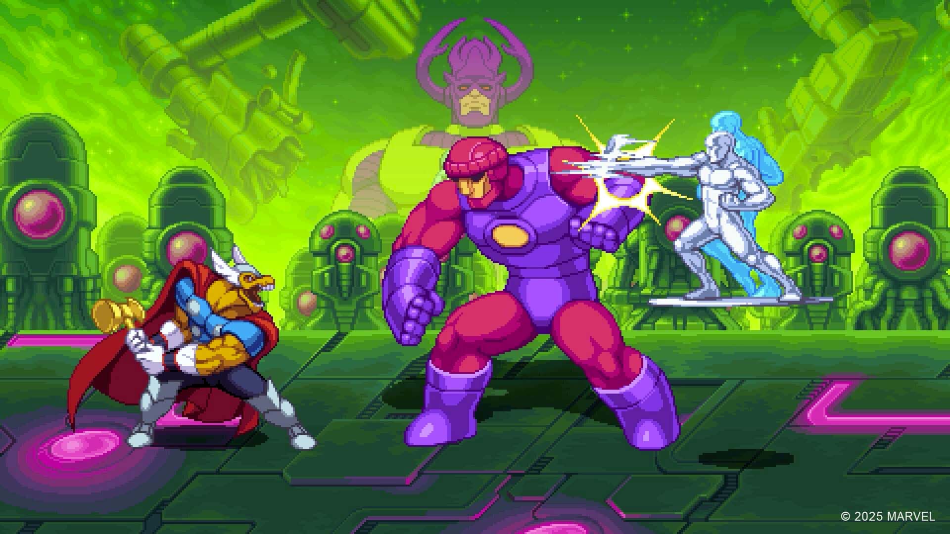 • MERAVIGLIOSA DIREZIONE ARTISTICA RETRO: Questo gioco è un tributo a una delle ere più iconiche di Marvel, con splendidi design in pixel art a colori.