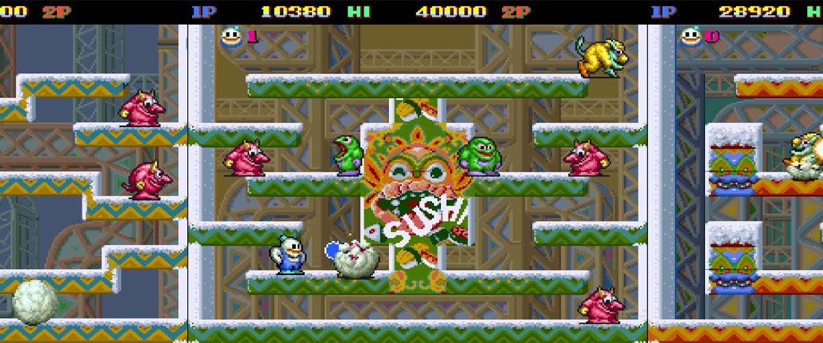 Prende la formula vincente di Bubble Bobble, la ricopre di neve, e ci aggiunge uno stile esageratamente cartoon. I protagonisti sono Nick e Tom, due fratelli trasformati in pupazzi di neve da un demone malvagio per impedire loro di salvare due principesse (ovviamente rapite, la legge degli anni ’90 lo imponeva).
